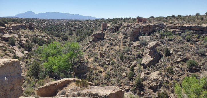 June 23 – 26, 2020: We came across Highway 145 and over Lizard Pass and camped for 4 nights at Echo Basin RV Park, just north of Mancos, CO. It was a spectacular campground about 5 miles from any busy road. From there we were able to drive over to Delores with the idea of visiting the Anasazi Heritage Center, which was closed due to Covid. We continued through the Canyon of the Ancients National Monument to Hovenweep National Monument (UT) for a wander through some of the many Ancient Pueblo communities that inhabited this area from 750 – 1300 A.D. This area borders the northern edge of the Ute Reservation right on the SW corner of CO.