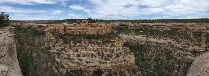 We stopped at Spruce Tree House to see the ruins and hike the Petroglyph Trail, which was partially closed. The parking lot was basically empty. No bus tours and very few people. Rather refreshing! Then we took the Mesa Top Loop drive where we saw the transition from ancient pit houses to the Cliff Palace.
