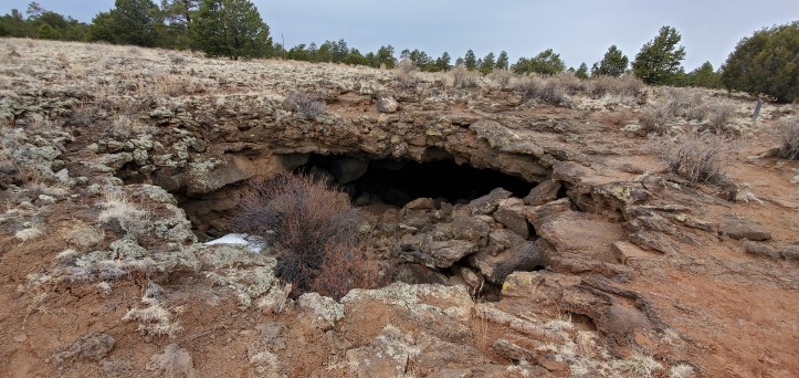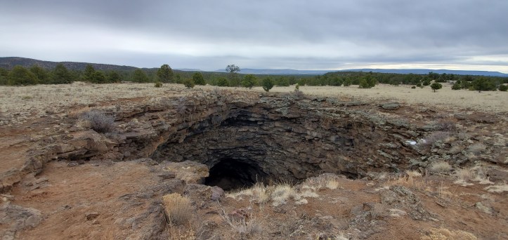 March 9: El Malpias NM, west of Albuquerque, that highlights the geological evidence of volcanos with blackened landscapes, cinder cones and what we found most interesting, the collapsed lava tubes that provide a cave-like system.