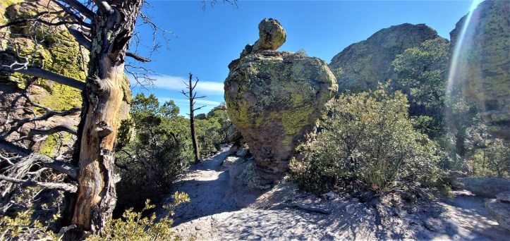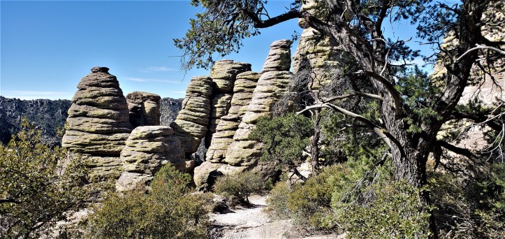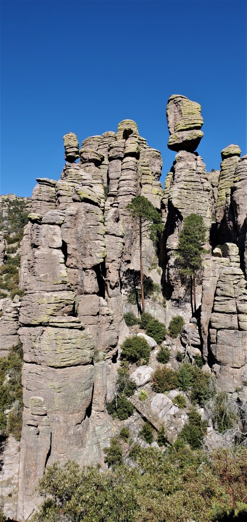 March 15: Chiricahua, NM, on the SE corned of Arizona that are more evidence of volcanic activity with heavy erosion and sculpting to form and isolated mountain range above the sea of grassland. We visited Chiricahua 3 years ago and enjoyed wandering around the “standing up rocks”, as they were known by the Chiricahua Apache that we wanted to re-visit for another hike.