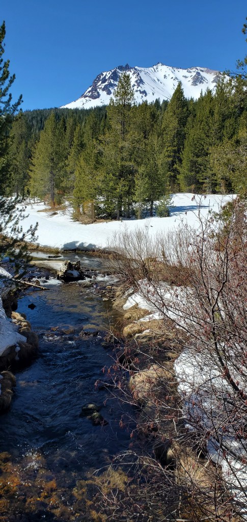 We visited Lassen a couple years ago just after the road was opened. We had never heard of it before our visit. We drove down to Truckee to visit our younger son’s best friend from Shaker Hts. after leaving Lassen. We stopped at Crater Lake on our way to Lassen on a quick stop as Bob had ridden his bike around it a couple years earlier…I sagged him. The snow is such a great enhancer of the whole experience.