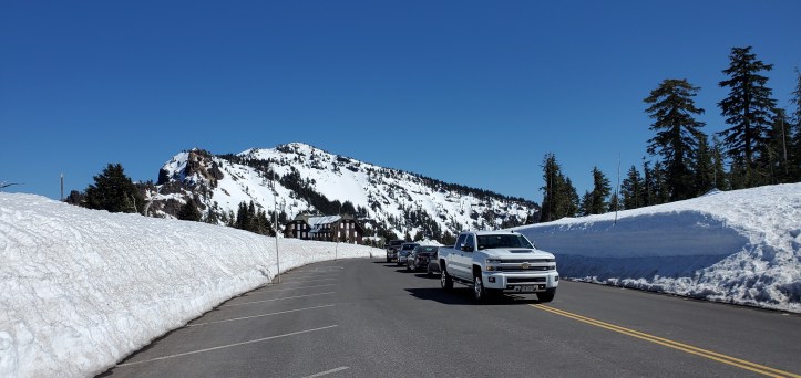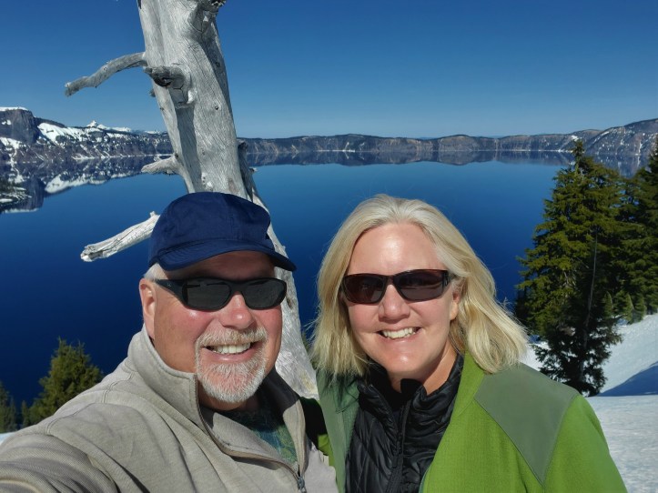 April 11: Crater Lake National Park – The theme of our national park visits off I5 was that much of the parks were still closed due to winter/spring snows. We knew this going in and were happy to enjoy their beauty despite not seeing the whole park. We were particularly overwhelmed with Crater Lake NP’s crystal clear beauty even though we were only there about a half hour!