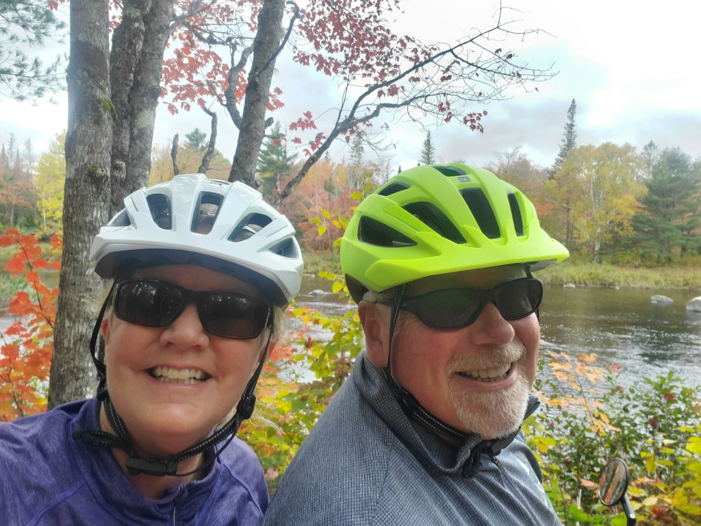 October 10: We found a fairly new biking, cross-country skiing park near Grindstone, ME on our trip to that area in August, the East Penobscot River Trails. This place was another demonstration of the generosity of Mainers as a local Mainer who made big $$$ with Fidelity built the biking, hiking and winter fun park and then donated it for public use. We came back to check out the trails in peak color and were not disappointed!