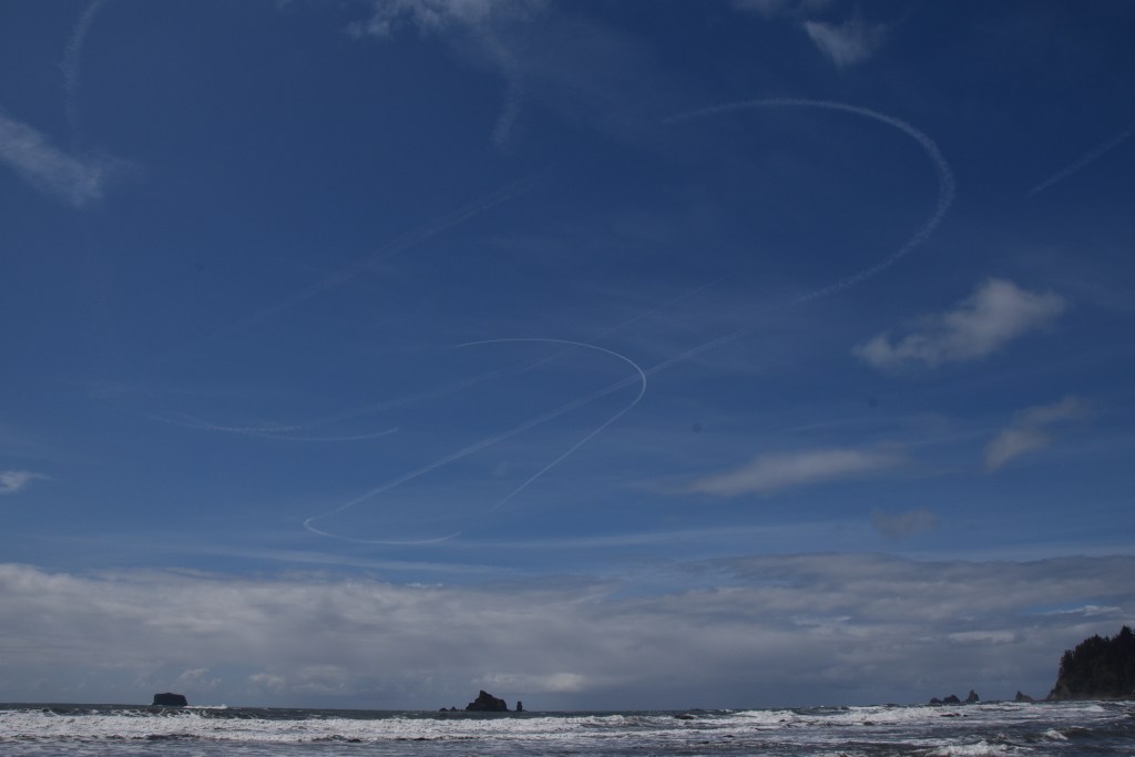 Fascinating Contrails…we figured out that they were from the fighter jets who live off Whidbey Island just north of us