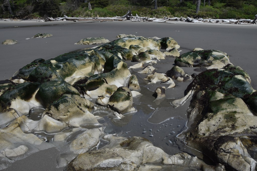 May 9 – 11: Two nights and a full day in LaPush, WA (the home of the werewolves from the book and movie Twilight series) allowed for a few hikes on the beaches in that area, Rialto Beach, First Beach (where we actually camped) and Second Beach. We also took the hour drive over to the Hoh Rainforest for a Dr. Suess-like experience in the heavily moss covered trees.
