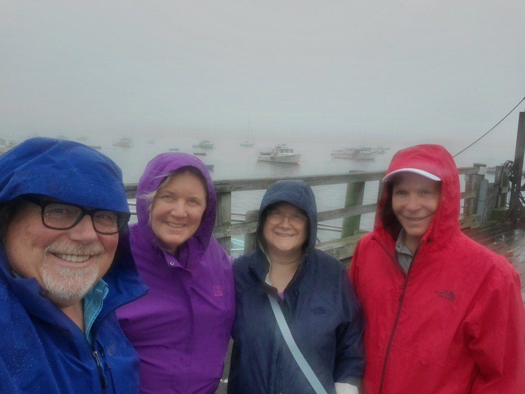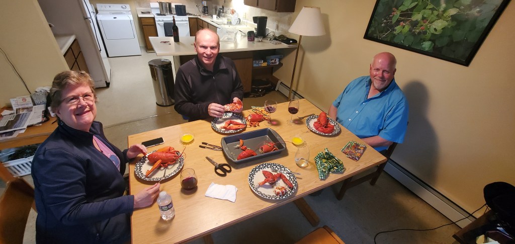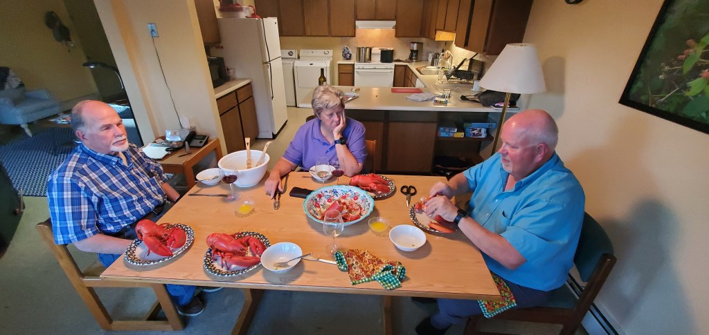 Tom’s brother, Lincoln Lounsbury and his wife, Carla, were our final visitors for August. This time we bought 8 lobster to last us for 2 dinners! And of course did much of the same touring in between a rainy foggy day and two beautiful sunny days.