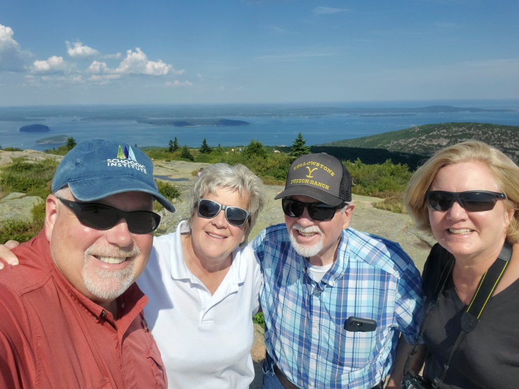 On top of Cadillac Mountain in Acadia NP with Patty & Don and Schoodic Peninsula in the background