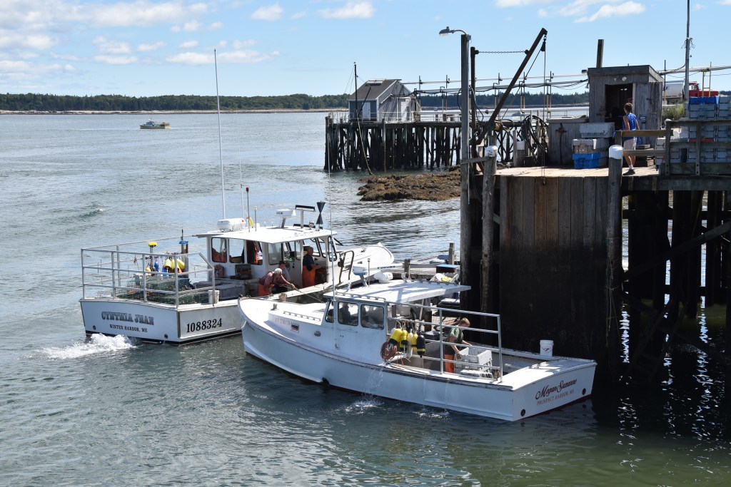 We got our lobsters from Megan’s son, Emmet’s boat, the Megan Suzzane. That’s her dad and her uncle in her dad’s boat, Cynthia Jean in Prospect Harbor