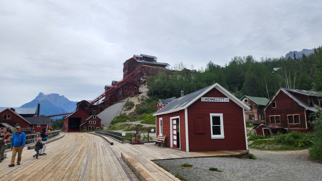 WSTNP is challenging to visit or as usual, a long drive or a chunk of $$$ can solve most challenges here in Alaska. The main Visitor’s Center is in Copper Center, just south of Glenallen and you can get some great views of the tall mountains and glaciers in the distance, which we did. Then we moved on to Chitina to place us in a good spot to drive the 60 miles of dirt road to McCarthy and take a shuttle up to Kennicott, both former mining ghost towns from the mining era of the early 1900’s that are resurging with tourism.