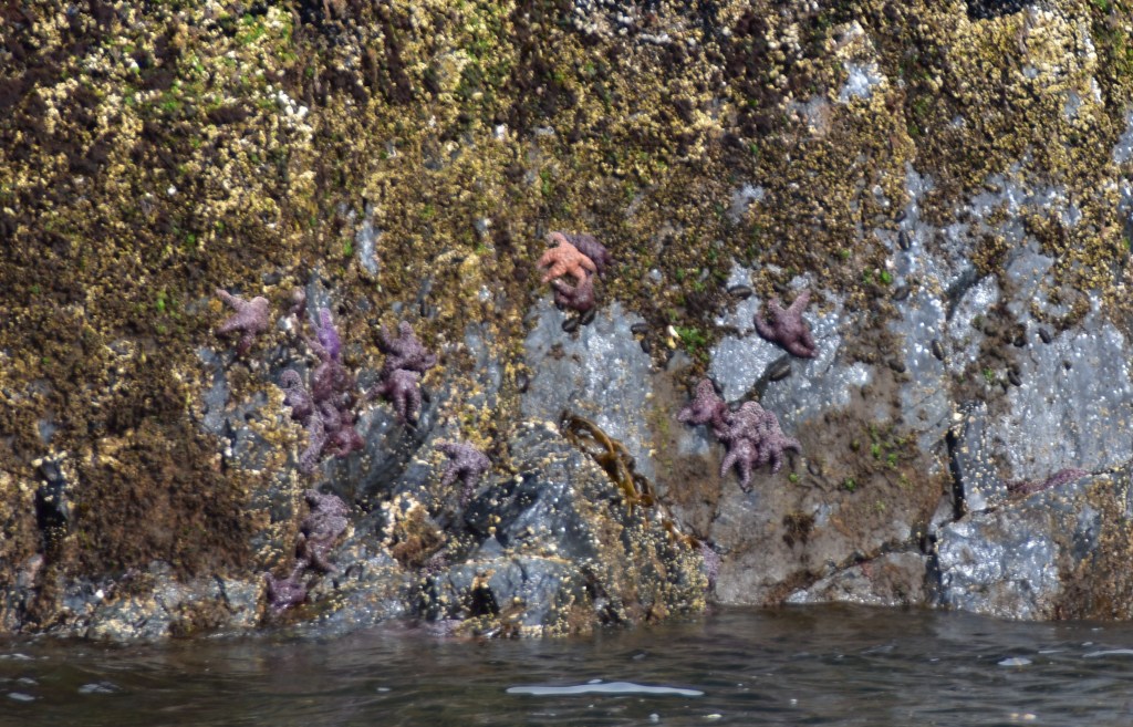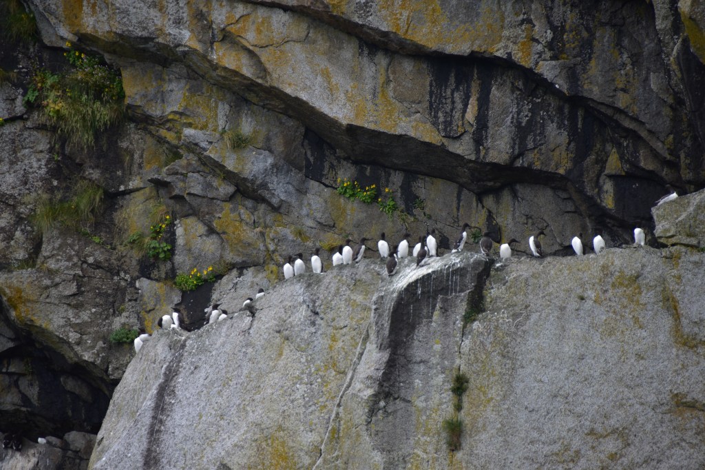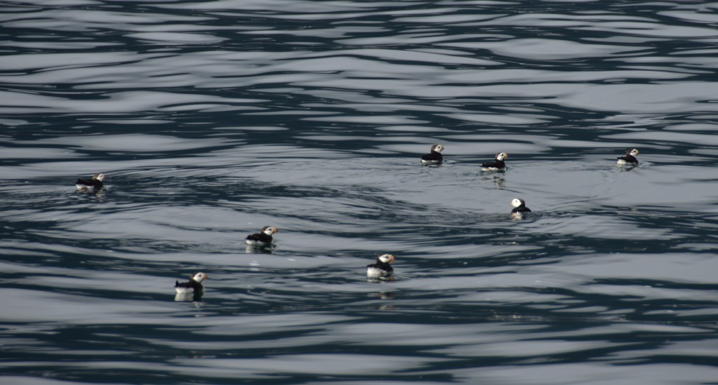 The variety of wildlife on this cruise was exceptional, but the most stunning experience with the wildlife was watching a group of 12 – 16 humpback whales “bubble net fishing” , which we watched at least 6 times. Bubble net fishing is where the whales get large breathes of air at the surface, dive down hundreds of feet and swim in circles together while blowing bubbles. The bubbles create a “net” around thousands of small fish that are forced to the surface for a concentrated food source. Heavy seagull activity just prior to the whales surfacing predict where the whales’ smorgasbord will occur.