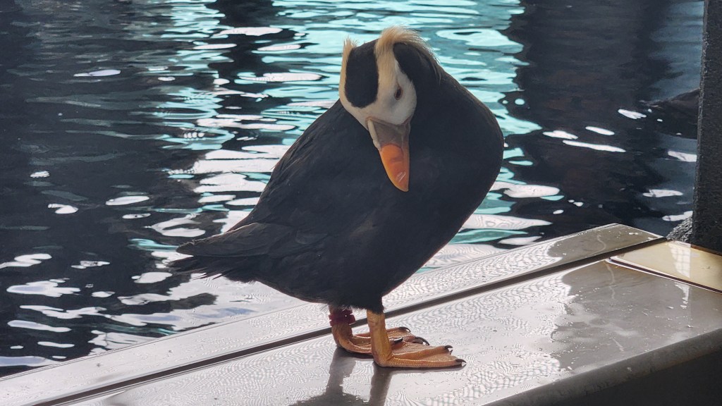 Kenai Fjords National Park (KFNP) was designated a national monument in 1978 and then became a national park in 1980. The focus of KFNP is to protect and preserve the Harding Icefield, the 40 glaciers that flow from this feature and the area where these mountains, ice and ocean meet. The best way to really see the glaciers is to take one of a variety of boat tours from Seward. The other way to connect with KFNP is to visit Exit Glacier, which is accessible by vehicle from a road as you drop into Seward. From the Exit Glacier area, the super serious hikers (not Tom and Jeanne) can actually hike up to see the Harding Icefield. We also stopped into see many of the wildlife we saw on the boat trip up close in the Alaska Seal Life Center, an aquarium and cold water research facility.