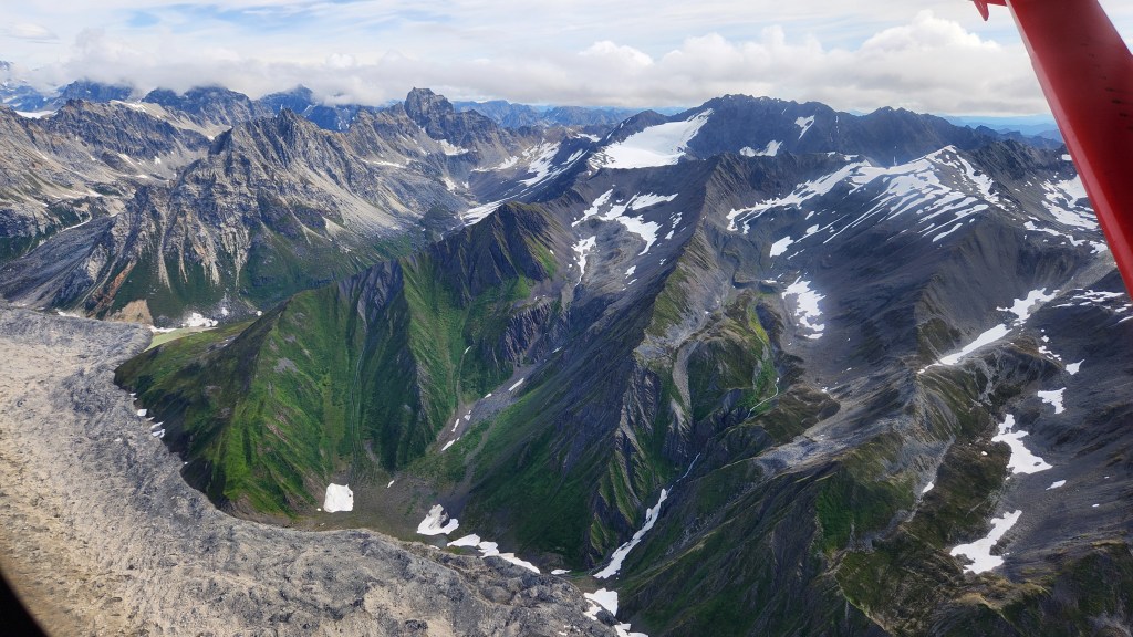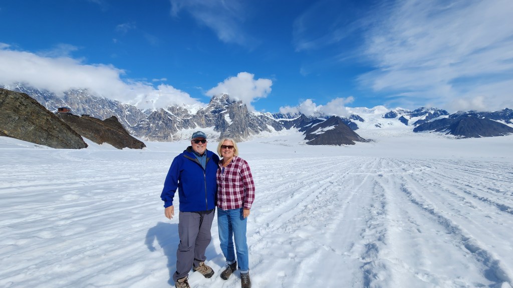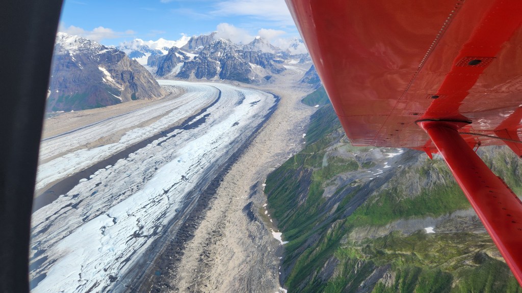 July 31 & August 9 – 10: We camped in Palmer, just north of Anchorage the end of July for a few days and drove across the Hatcher Pass to Willow and up to Talkeetna. Since Denali Peak was clearly shinning and visible from everywhere, we took advantage of the day and splurged on a flight seeing trip up to Ruth Glacier on Denali, actually landing on the glacier and walking around for about 15 mintues,then flying back to Talkeetna…amazing!