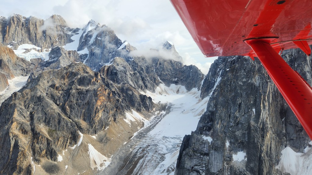 Coming in for a landing on Ruth Glacier