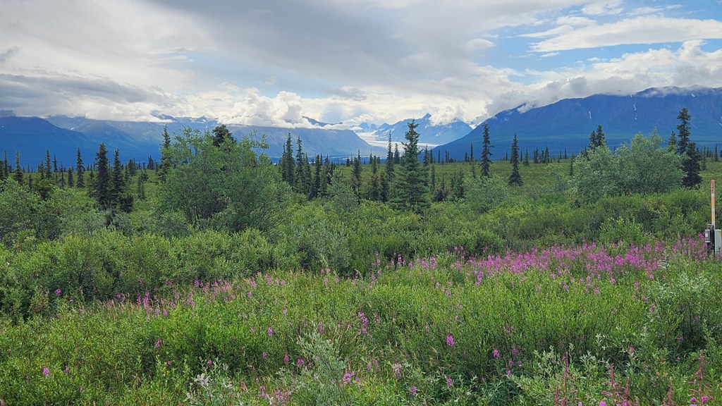 Matanuska Glacier in the background from the Glen Highway (Glenallen to Anchorage)