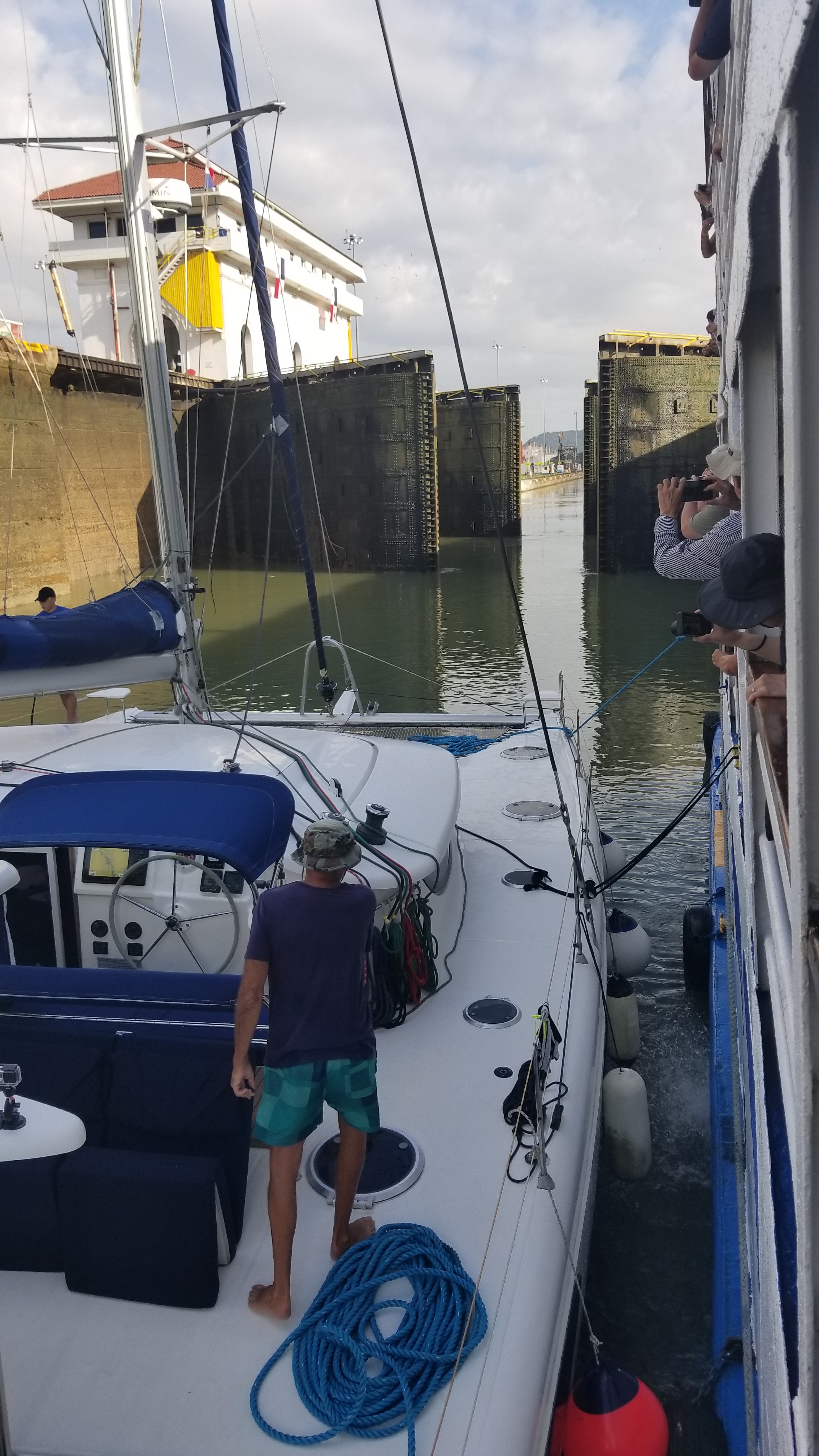 Lock opening with catamarans